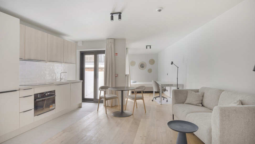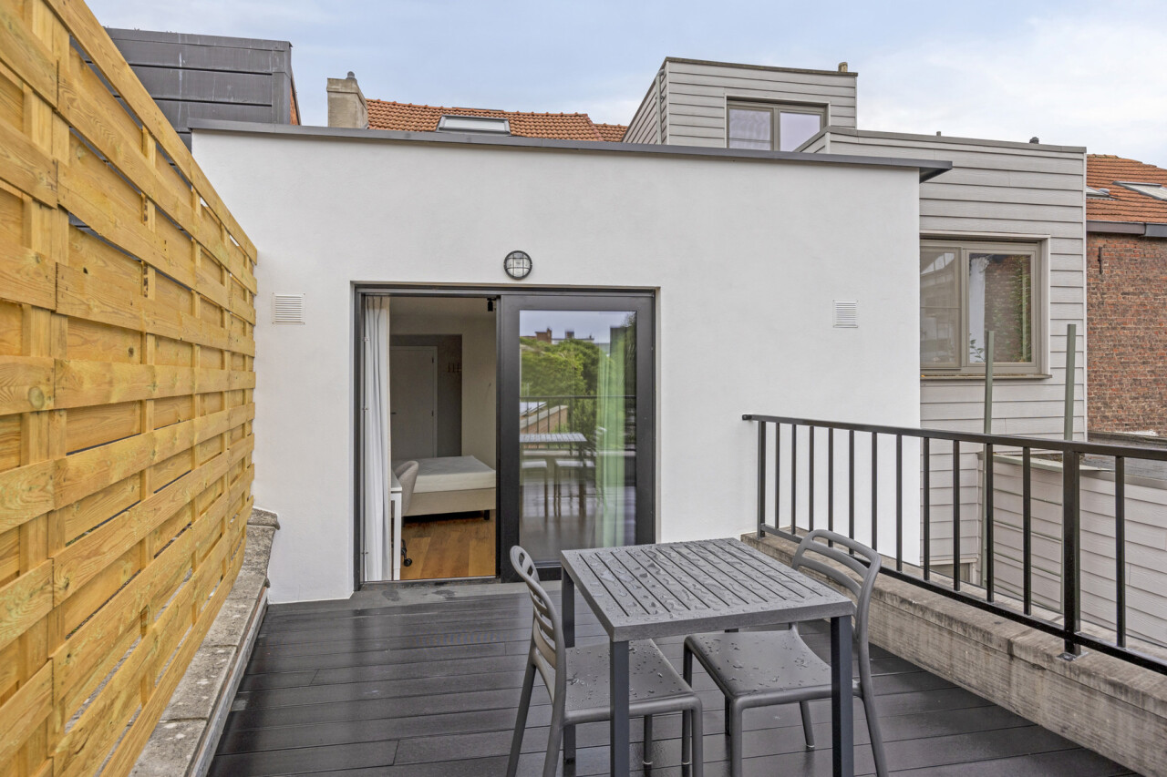 UNIT 01.01: Studio eerste verdieping achterzijde (24m²), privatieve keuken en badkamer, zeer ruim privatief terras.