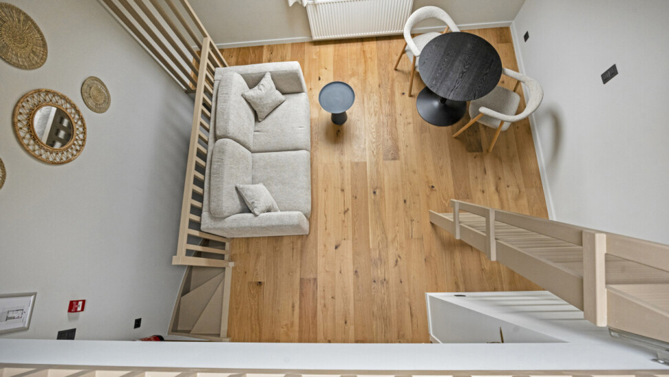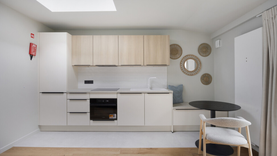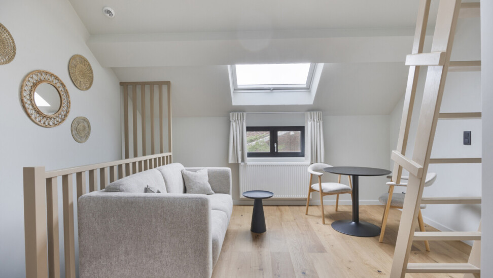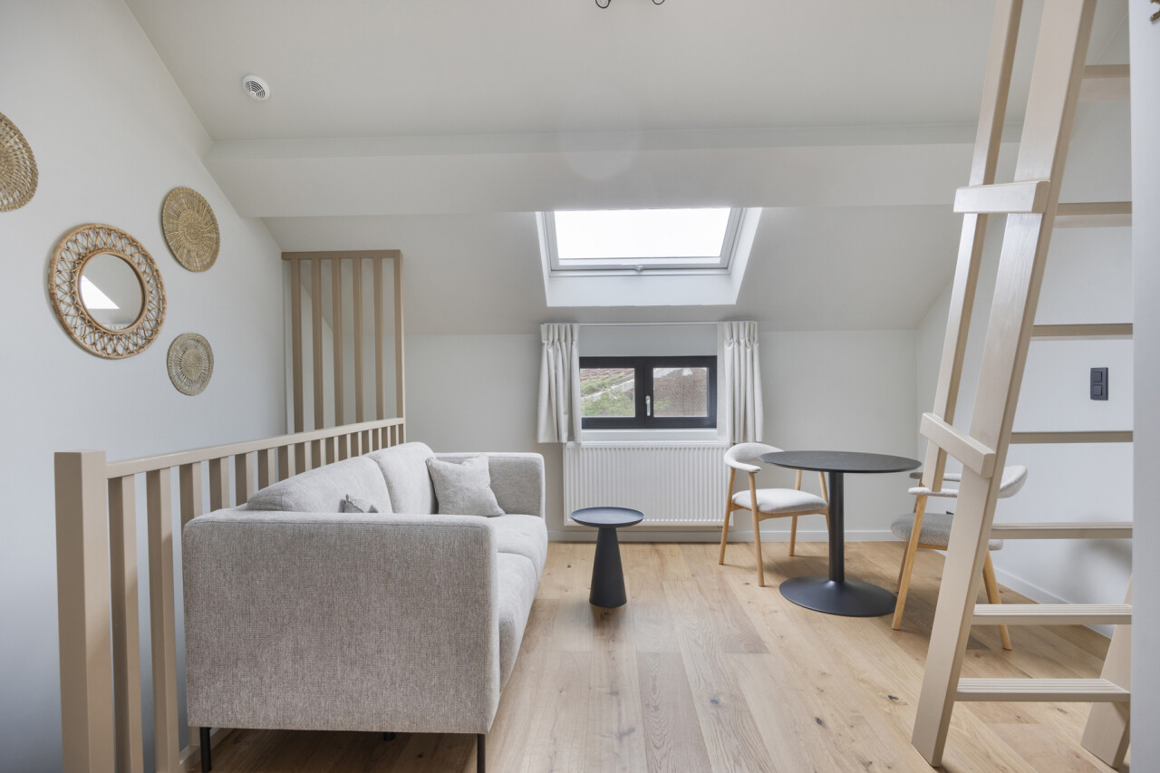 UNIT 02.01: Studio eerste en tweede verdieping (26m²), privatieve keuken en badkamer en hoogslaper.