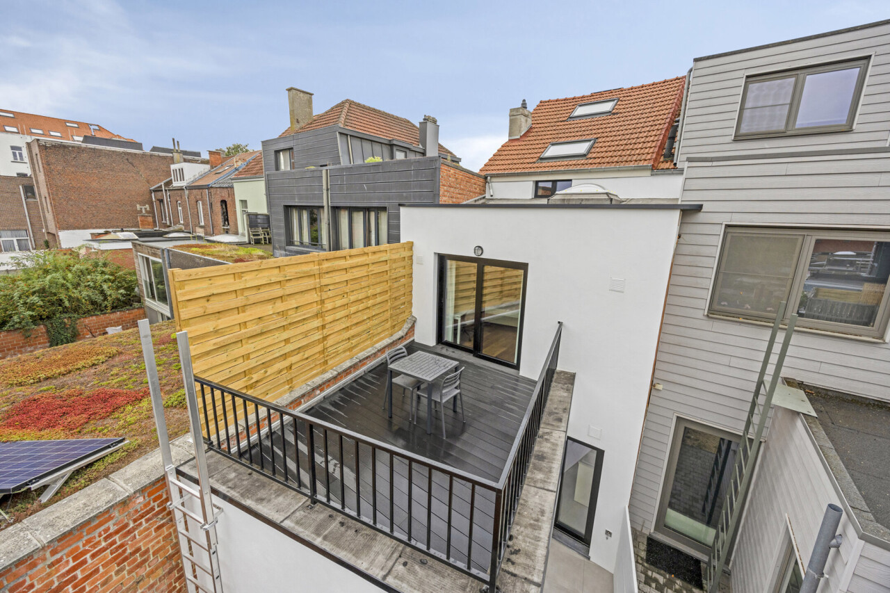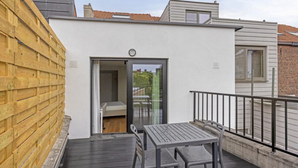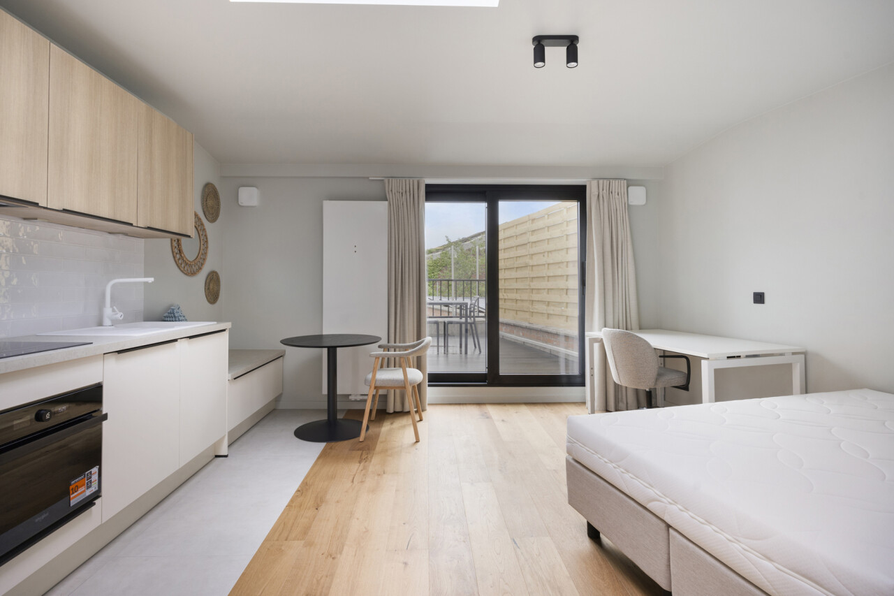 UNIT 01.01: Studio eerste verdieping achterzijde (24m²), privatieve keuken en badkamer, zeer ruim privatief terras.