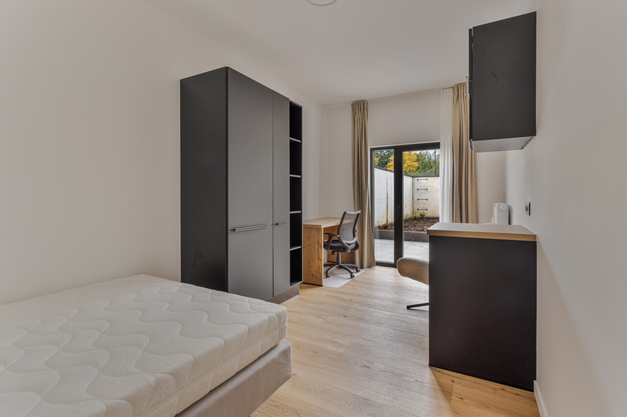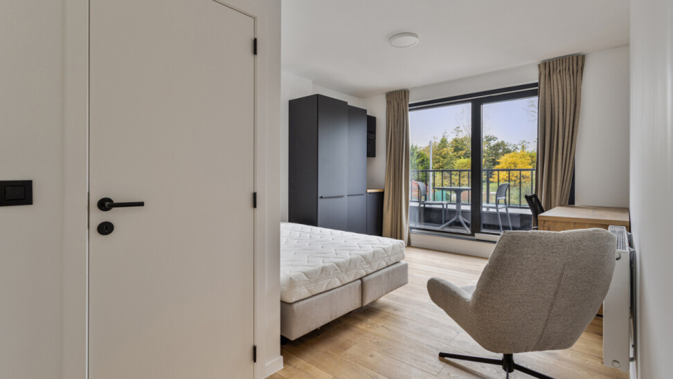 Deze residentie is gelegen aan de Leuvense stadsrand, namelijk aan de Geldenaaksebaan! Deze locatie biedt zowel voor studerende jongeren als starters in Leuven, Heverlee én Brussel een goede uitvalsbasis.