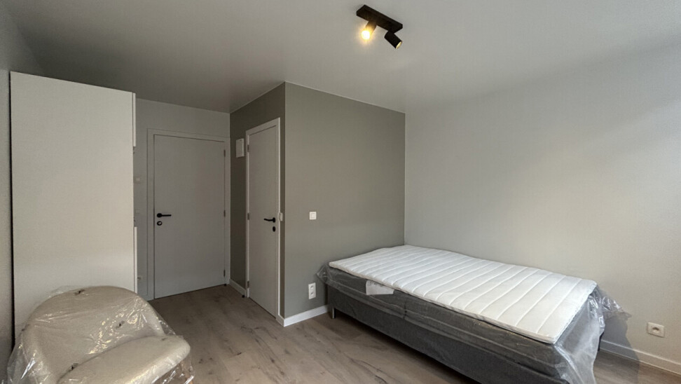 de gevraagde strenge energiezuinigheidsnormen. De entiteiten zijn kamers eigen sanitair en een studio, dewelke volledig bemeubeld aangeboden worden. Bovendien is er een inpandige