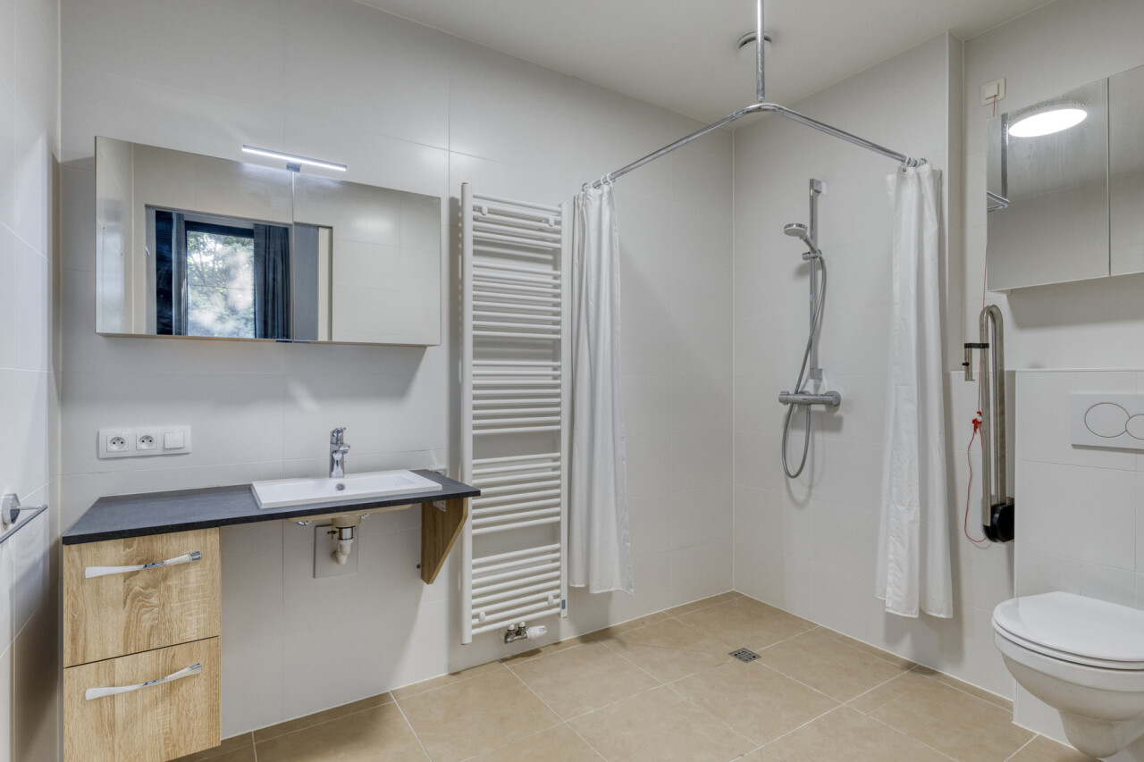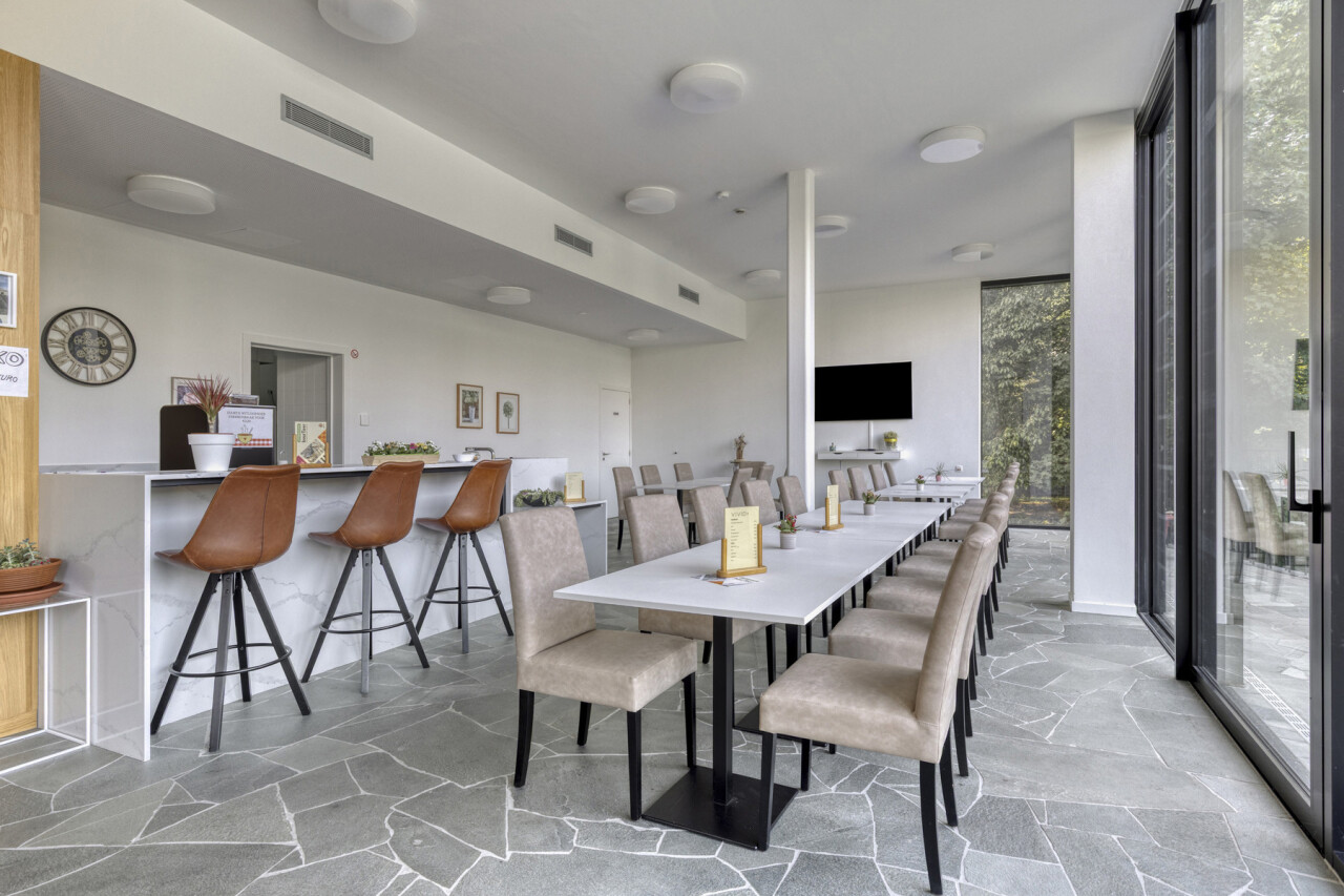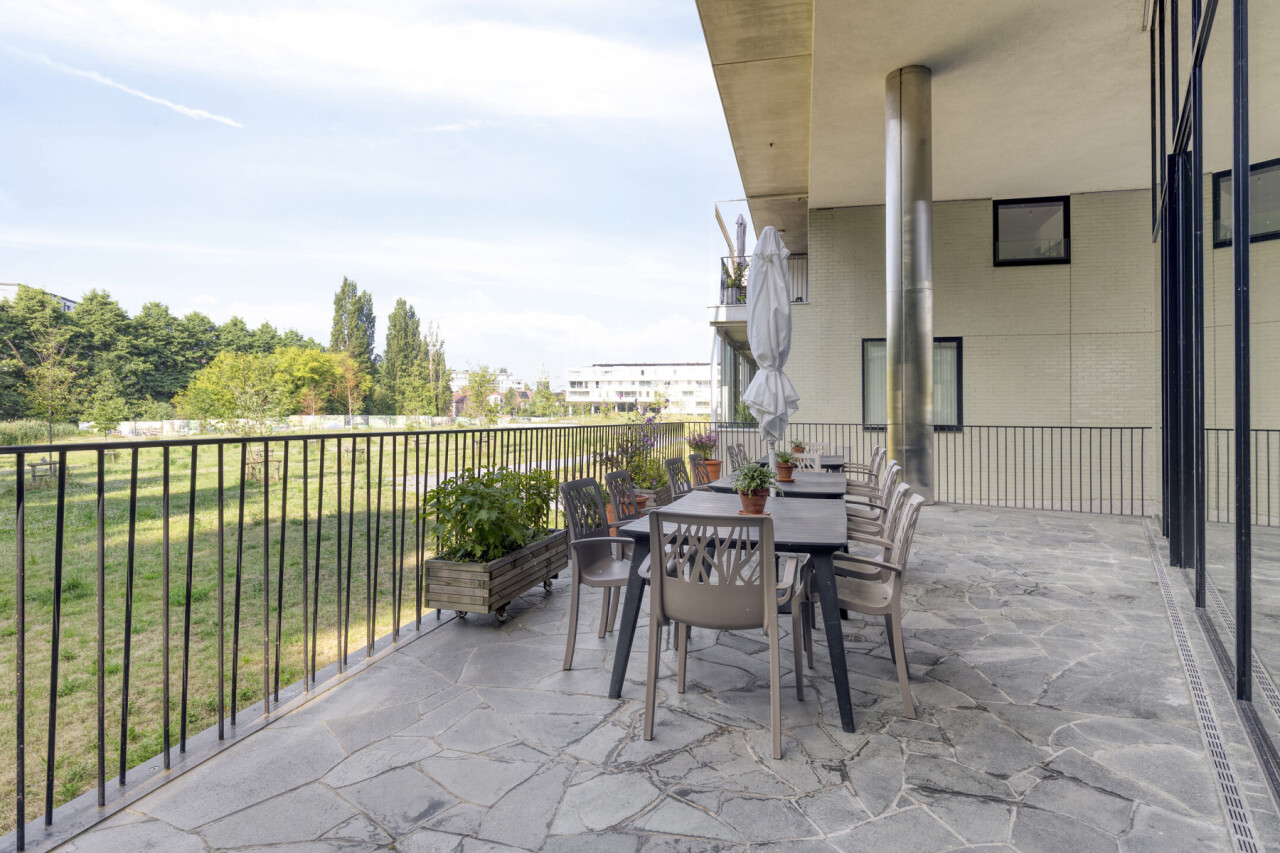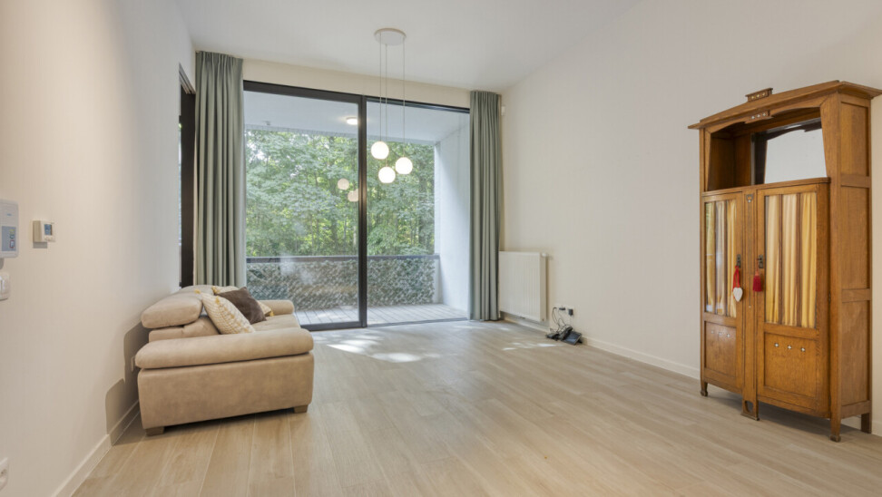 Deze serviceflat is een lichtrijk appartement gelegen op de gelijkvloerse verdieping van het gebouw en voorzien van al het nodige: zo zijn er gordijnen, horren en verlichting aanwezig. De inkomhal is bestaande uit vestiairekast waar er plaats is voor de technieken en een wasmachine. De open leefruimte met keuken geeft toegang tot het houten terras met uitzicht op groen en de oever van de Dijle. De slaapkamer heeft op maat gemaakte kasten en loopt naadloos over naar de ruime badkamer die uitgerust is met een toilet, douche en badkamermeubel. Bijkomend is er een ondergrondse autostaanplaats niet inbegrepen in de prijs (35.000€). Uiteraard kan u ook gebruik maken van de gemeenschappelijke inkomhal (met Bringme-box) en de gezellig ontmoetingsruimte met bar, keuken en rustig zonnig terras met zicht op groen.