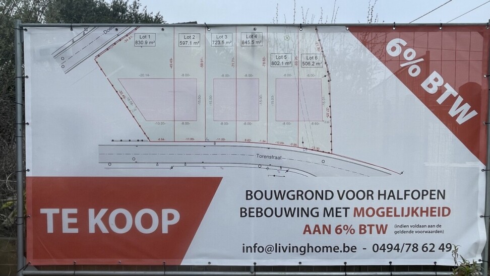 ideaal gelegen bouwgrond voor halfopen bebouwing met een Zuidwest gerichte tuin met mogelijkheid tot het bouwen van een nieuwbouwwoning aan 6% btw met de firma LivingHome. Constructieprijs te bespreken volgens het bouwtype en de gekozen afwerking ( prijzen liggen meestal tussen de 300.000 en 400.000 euro). Volgens de verkavelingsvergunning kan er qua bouwstijl vrij gekozen worden tussen een woning met een plat dak of zadeldak, wel moeten de aaneengeschakelde woningen hetzelfde type dak hebben. Kroonlijsthoogte max 6,50m, nokhoogte max. 12m., max bouwdiepte op het gelijkvloers 15m en op de 2de bouwlaag 12m en 30m2 voor een terras. Wglk-Vvg-Gdv-Gkr