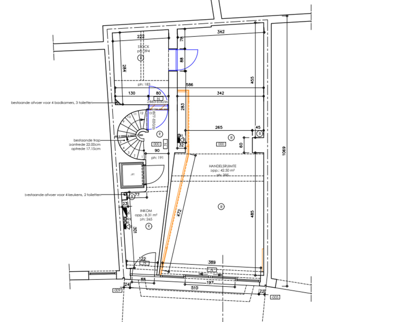 Dit pand biedt de ideale locatie voor commerciële doeleinden. Met een oppervlakte van 42,50 vierkante meter en een toilet op het tussenverdiep, is deze ruimte perfect voor ondernemers die op zoek zijn naar een goed gelegen en modern handelspand.