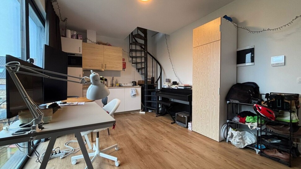 Huurprijs: €855 + 50€ provisie (gemeenschappelijke kosten, internet en verwarming) + water en elektriciteit privatief