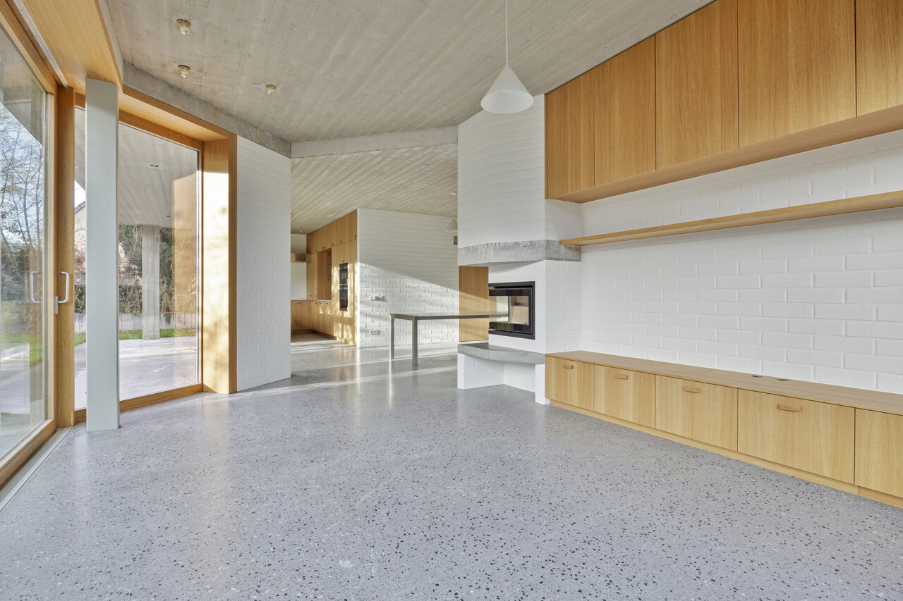 Binnenin word je verwelkomd door lichtrijke ruimtes dankzij de hoge raampartijen die je een open en luchtig gevoel geven. De ruime leefruimte is een echte eyecatcher, afgewerkt met een gezellig haardvuur en rechtstreeks verbonden met de open, volledig geïnstalleerde keuken waar de schuiframen volledig opengezet kunnen worden en je zo een buitenkeuken creëert. Vanuit de keuken heb je een prachtig zicht op de onderhoudsvriendelijke en gezellige tuin met terras, ideaal voor ontspanning en privacy.