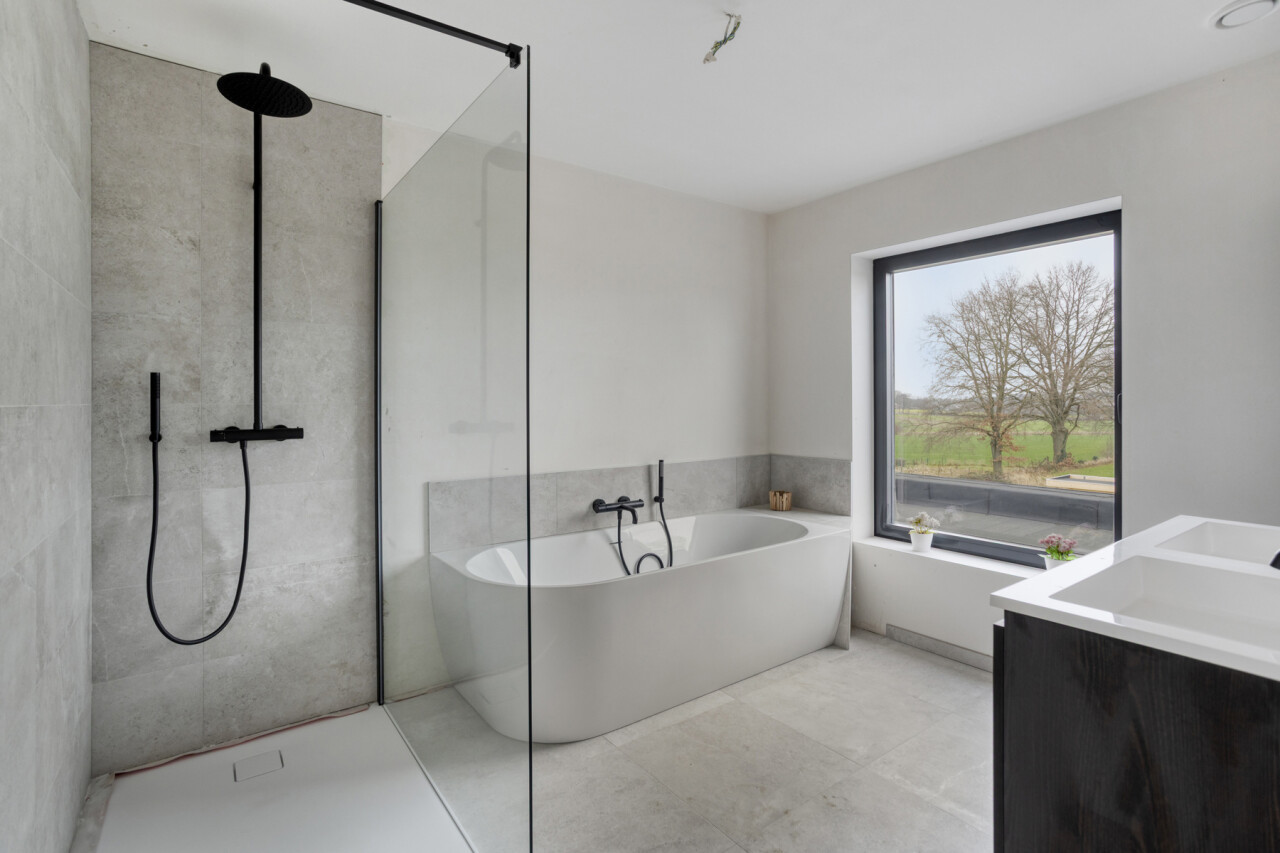 Op de eerste verdieping bevinden zich vervolgens de drie volwaardige slaapkamers waarvan eentje met een dressing en twee badkamers met alle comfort.