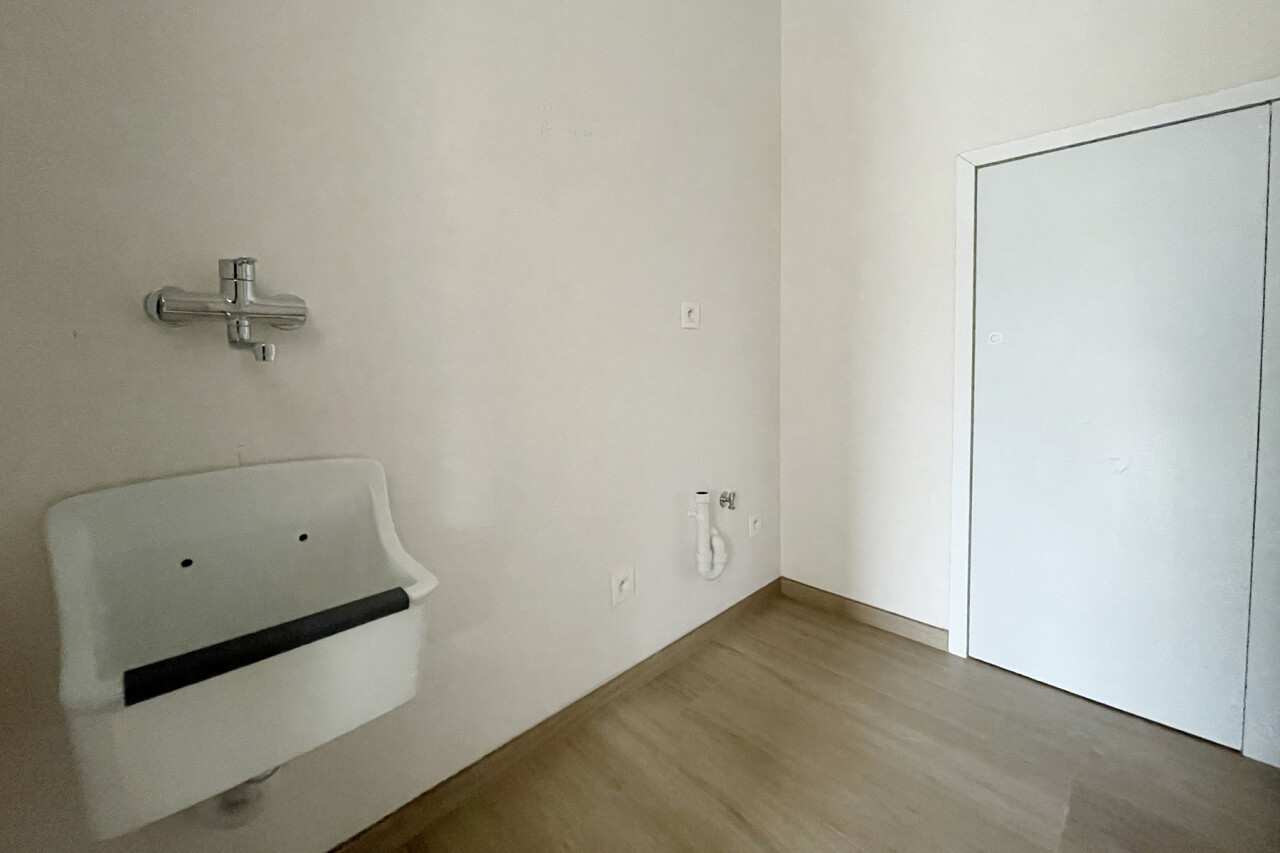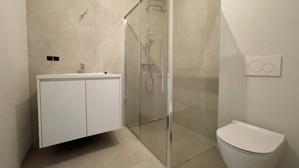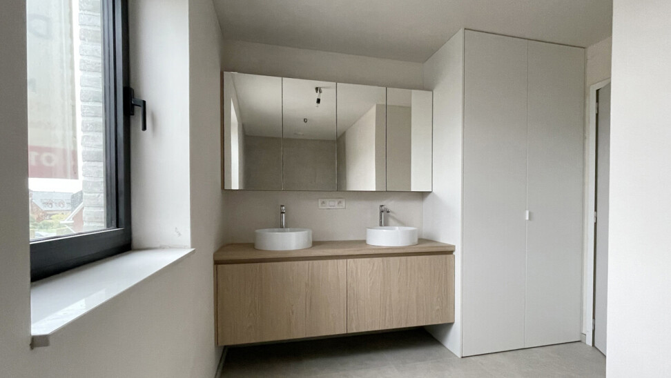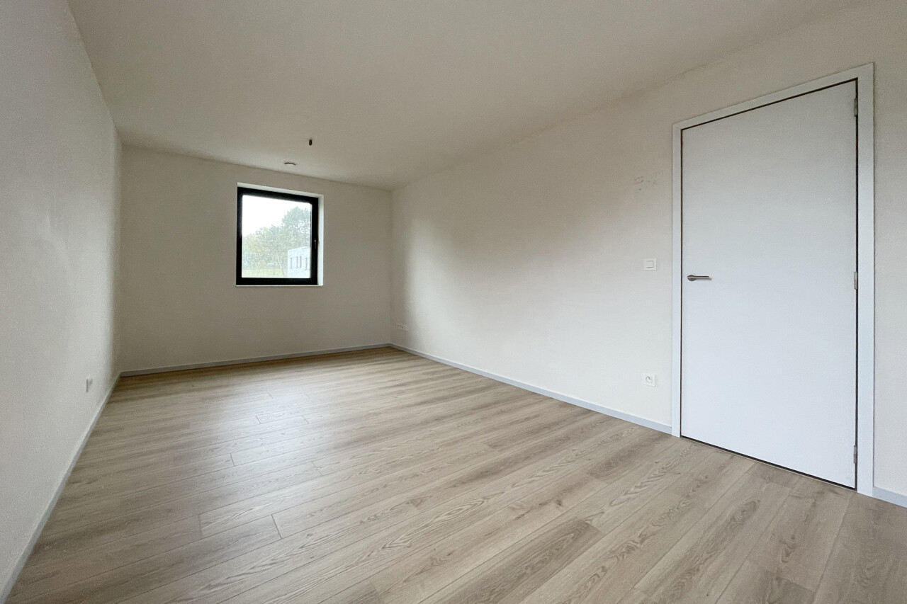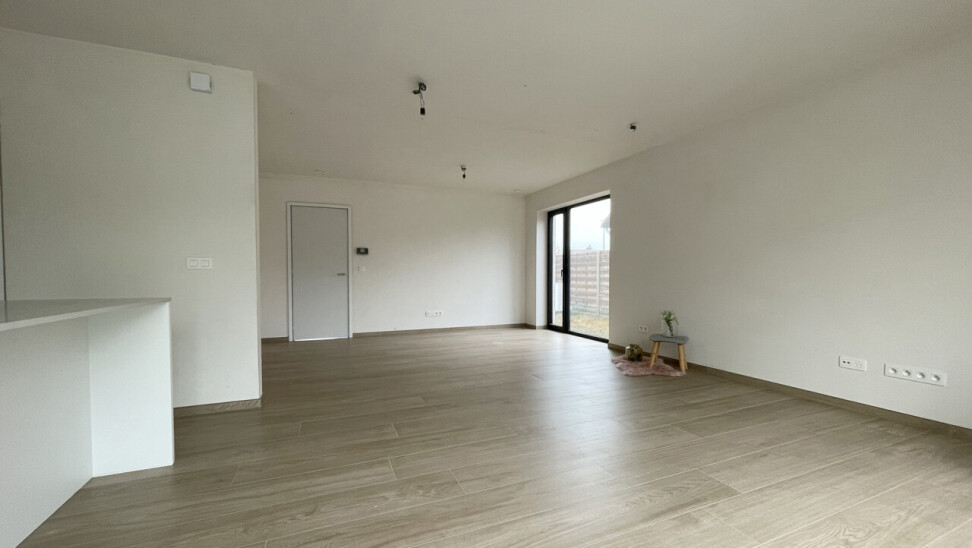 Bij het binnenkomen van de woning kom je in de inkomhal met gastentoilet, die toegang geeft tot een praktische bureauruimte, een lichtrijke leefruimte met eetgedeelte en een prachtig zicht op de tuin. De grote raampartijen zorgen voor een overvloed aan natuurlijk licht en creëren een aangename woonbeleving. Aansluitend bevindt zich de volledig ingerichte moderne keuken, uitgerust met kwalitatieve toestellen en voldoende bergruimte. Verder vind je op het gelijkvloers een berging/wasplaats die tevens dienst doet als technische ruimte, perfect geïntegreerd in het geheel.