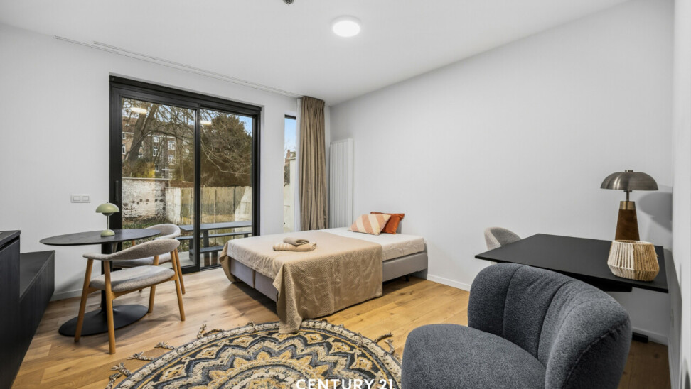 De studio is volledig bemeubeld, heeft een volledig geïnstalleerde keuken en badkamer en een privatieve tuin. Ronduit, alles om te kunnen ontspannen na een lange dag vol lessen.