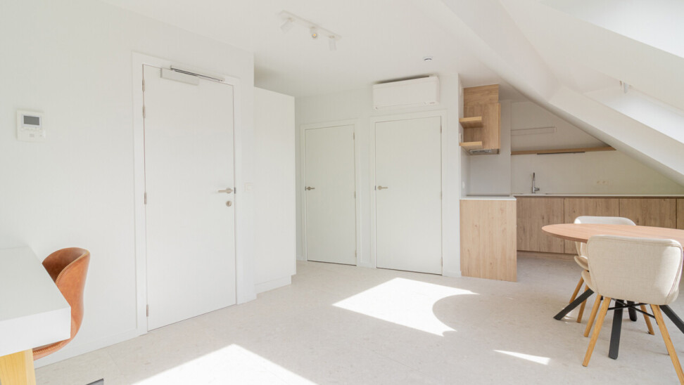 Elk appartement beschikt over een volledig uitgeruste keuken, een stijlvolle badkamer, een aparte slaapkamer en wordt bovendien volledig bemeubeld aangeboden. De renovatie werd twee jaar geleden uitgevoerd met bijzondere aandacht voor kwaliteit en wooncomfort. Zo zijn er zonnepanelen geplaatst, wordt er verwarmd met een lucht-lucht warmtepomp, werd de ventilatie volledig vernieuwd en beschikt het gebouw over een lift.