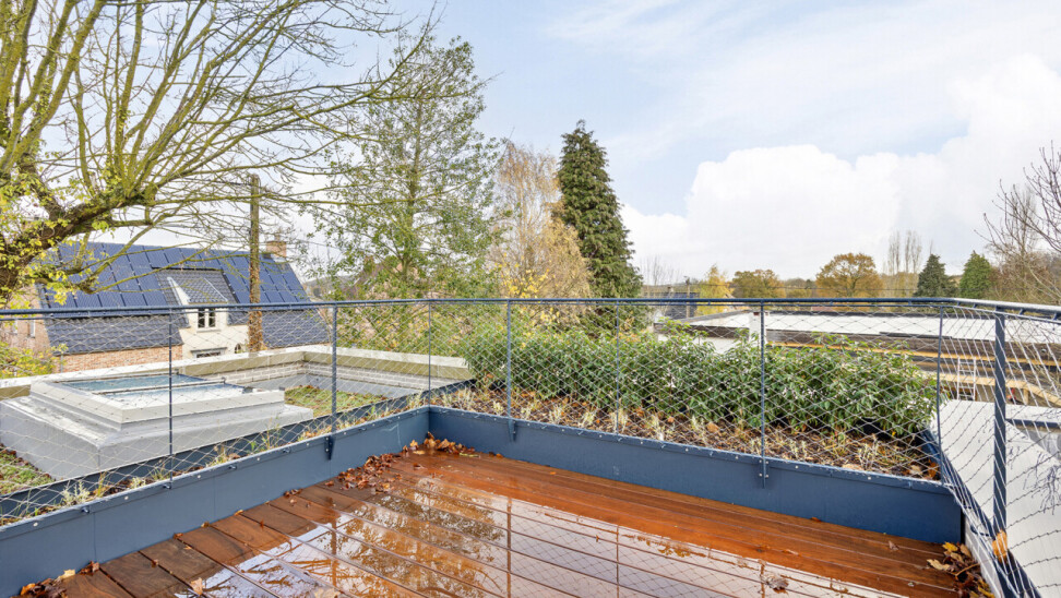 Binnenin word je verwelkomd door lichtrijke ruimtes dankzij de hoge raampartijen die je een open en luchtig gevoel geven. De ruime leefruimte is een echte eyecatcher, afgewerkt met een gezellig haardvuur en rechtstreeks verbonden met de open, volledig geïnstalleerde keuken waar de schuiframen volledig opengezet kunnen worden en je zo een buitenkeuken creëert. Vanuit de keuken heb je een prachtig zicht op de onderhoudsvriendelijke en gezellige tuin met terras, ideaal voor ontspanning en privacy.
