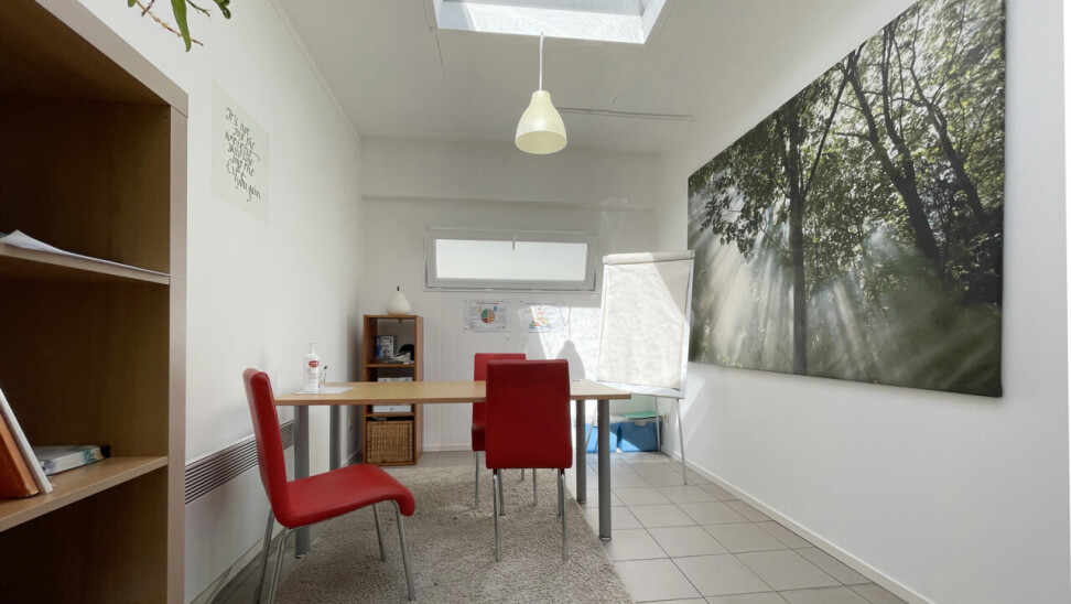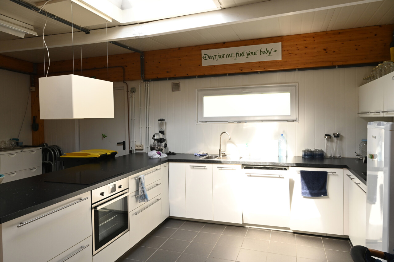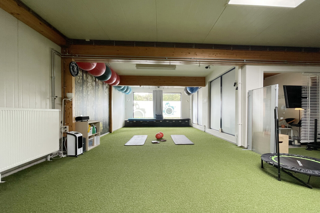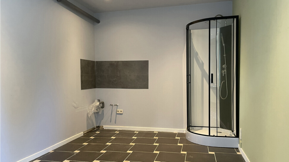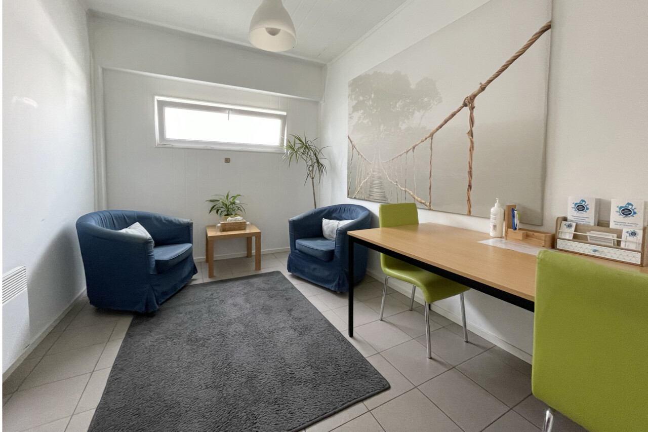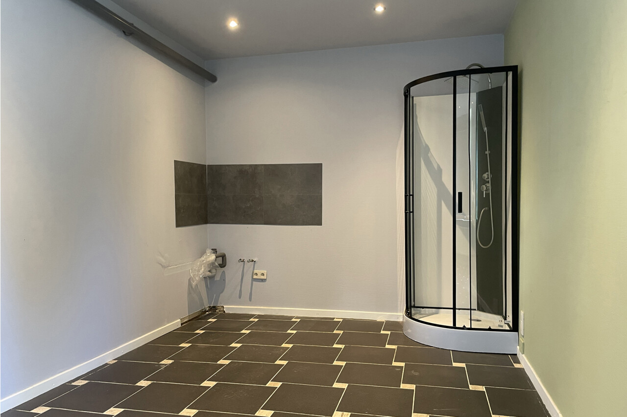 De praktijruimte omvat een polyvalente ruimte, wachtzaal, wc, douche, berging, drie kabinetten, een refter met bureau, keuken en een buitenruimte. Extra comfort wordt voorzien door een bijkomende douche op dit niveau.