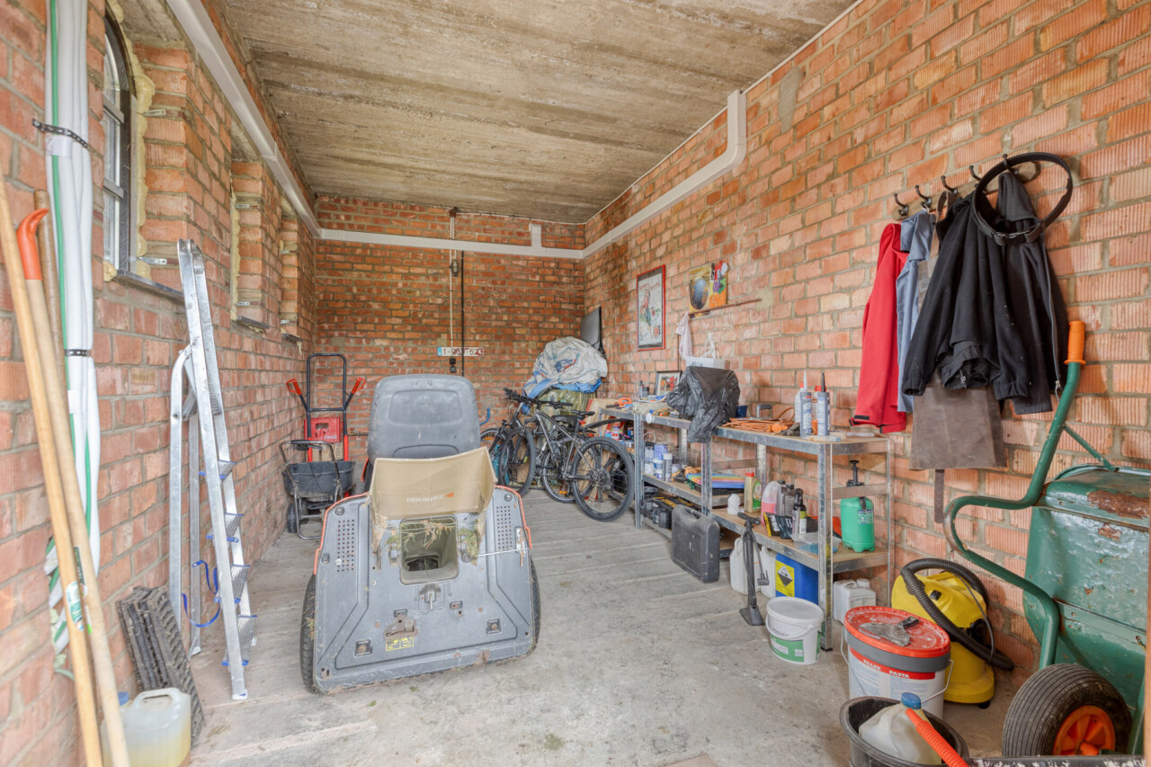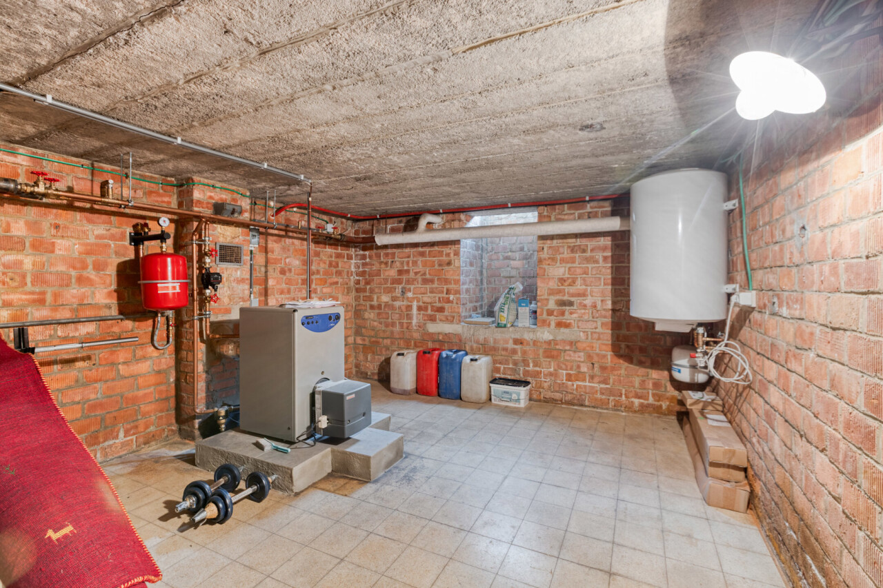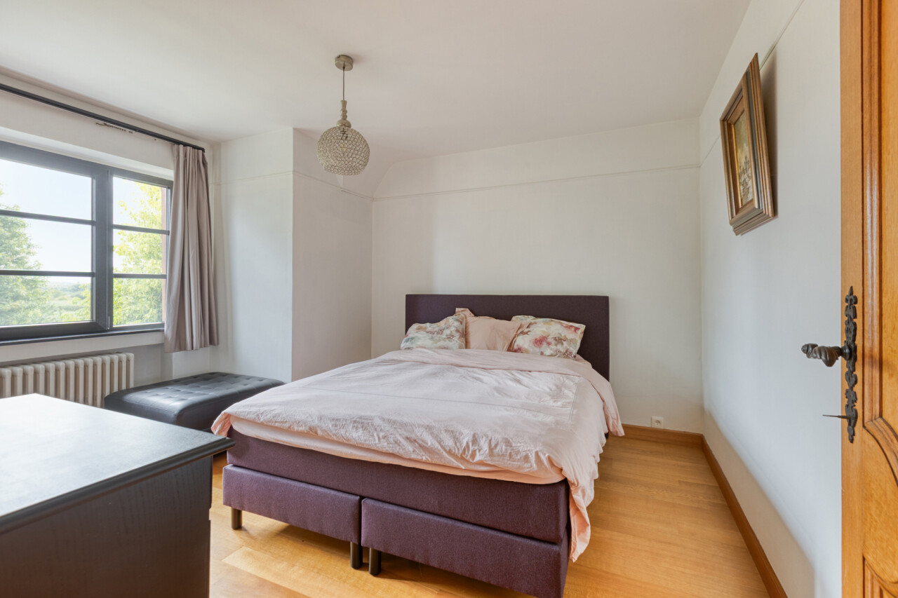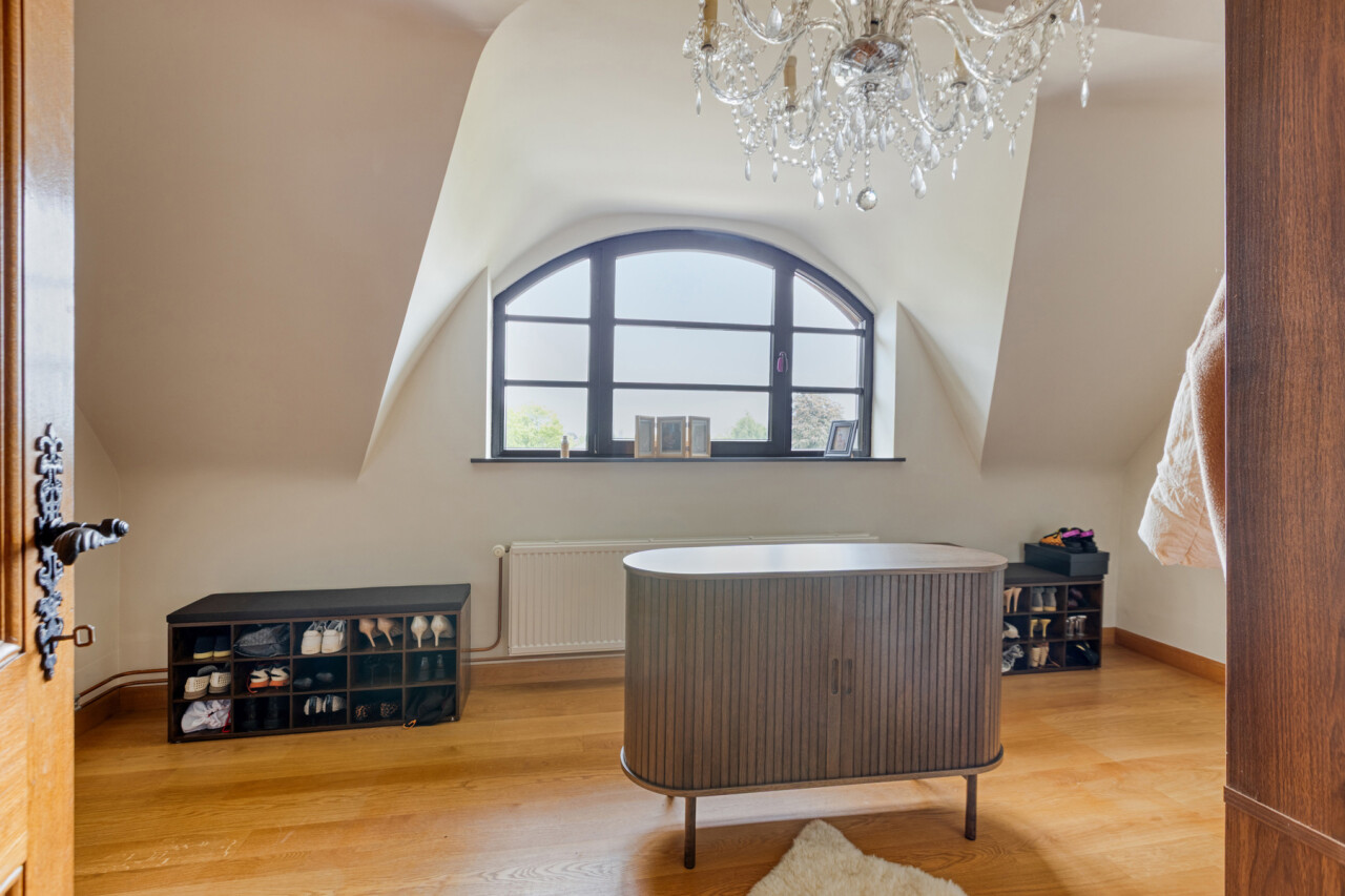 Op de verdieping bevinden zich vier grote slaapkamers, een dressing, een bergzolder en een stijlvolle badkamer met lavabo, ligbad en inloopdouche. De woning is volledig onderkelderd en beschikt over een tuinberging, een garage, terwijl er buiten parkeergelegenheid is voor ongeveer vier wagens.