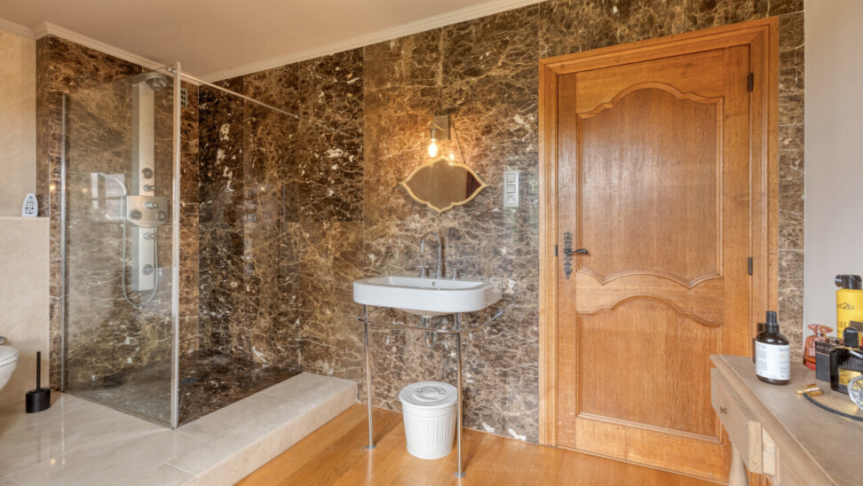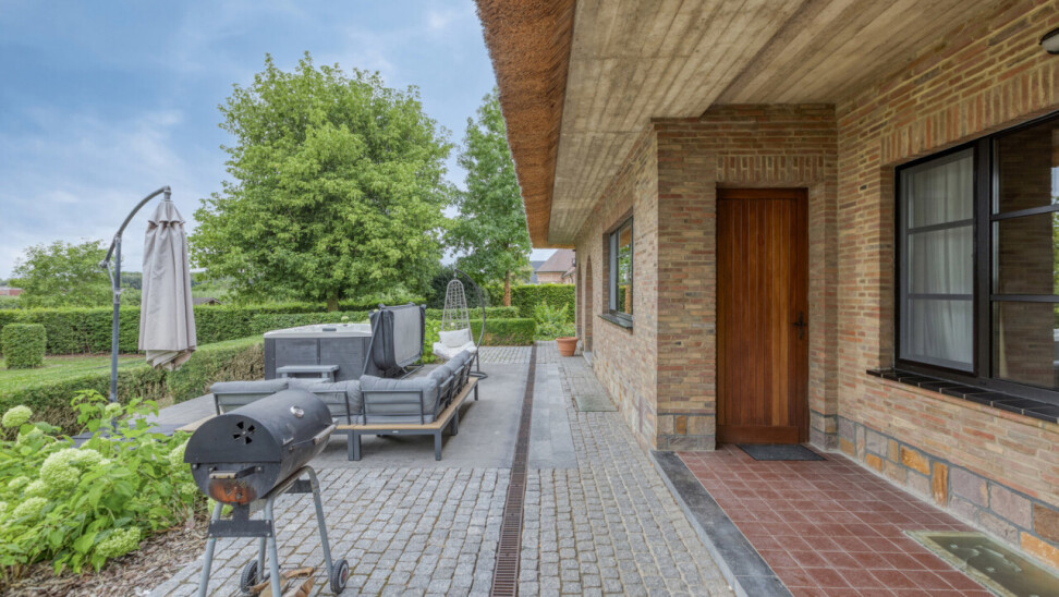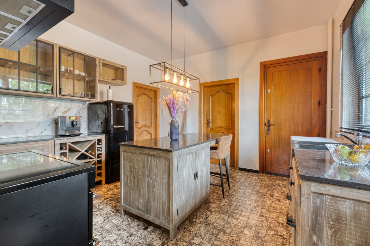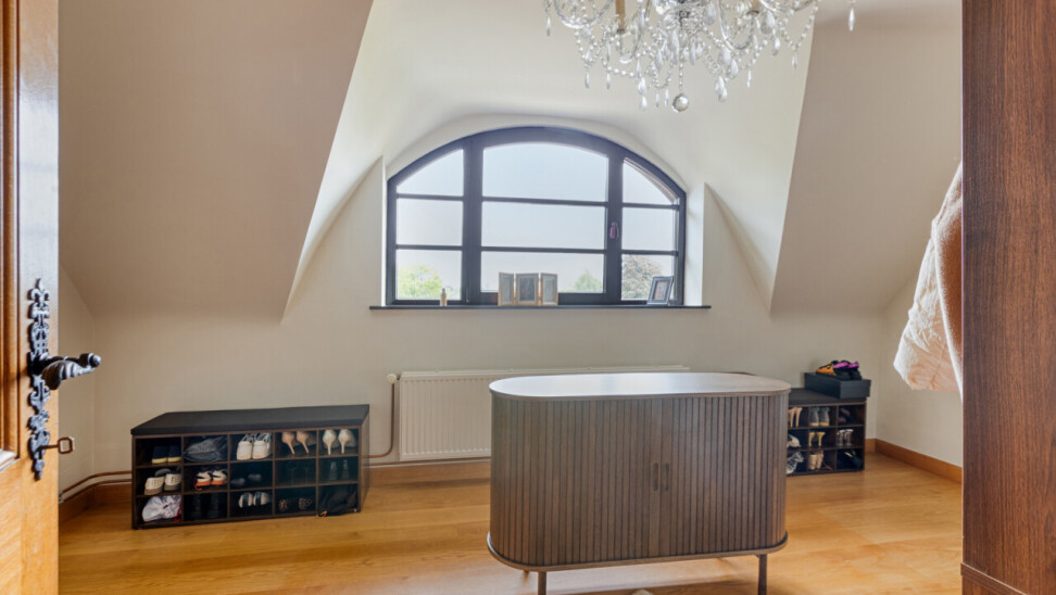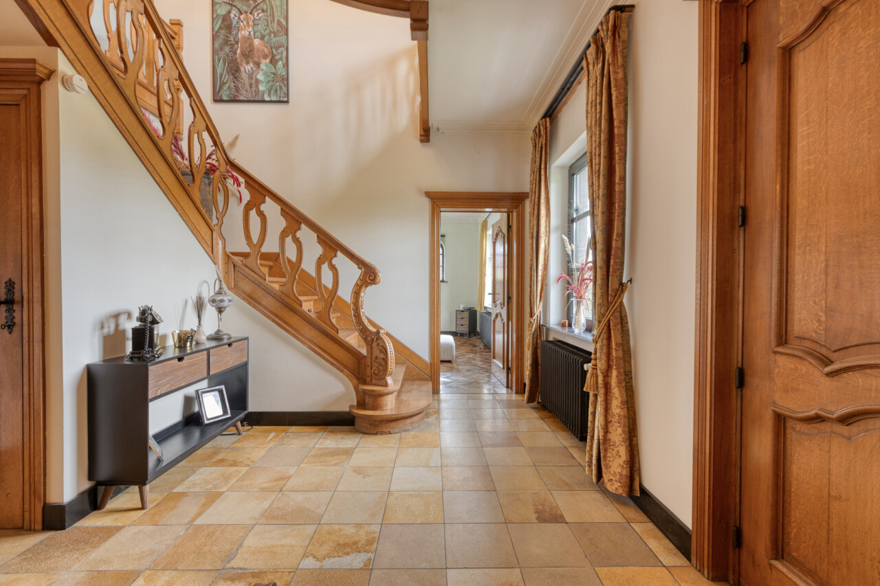 Bij het binnenkomen verwelkomt de ruime inkomhal u met een prachtige trap die meteen de stijl van de woning benadrukt. De lichtrijke leefruimte biedt een prachtig zicht op de zuid gerichte tuin en het aangename terras. De mooi geïnstalleerde keuken is volledig uitgerust en vormt samen met de bureauruimte een ideale combinatie van comfort en functionaliteit.