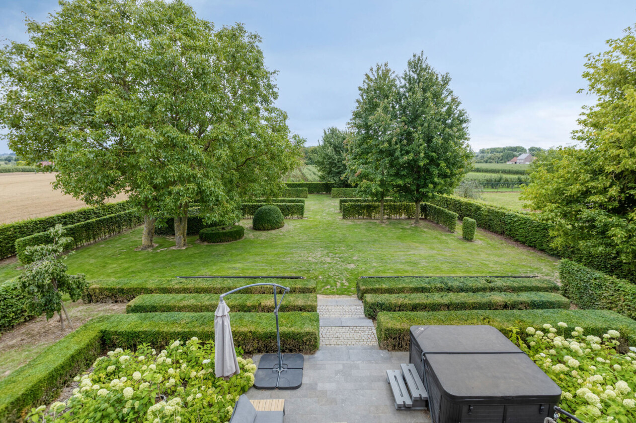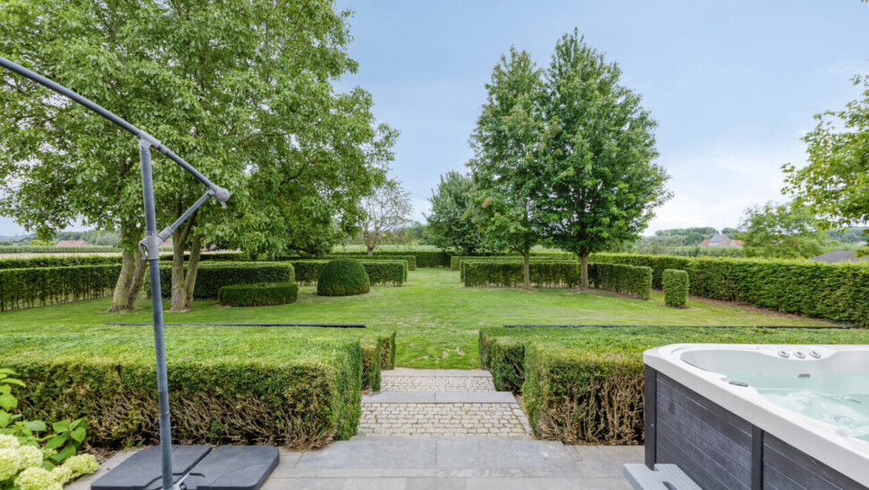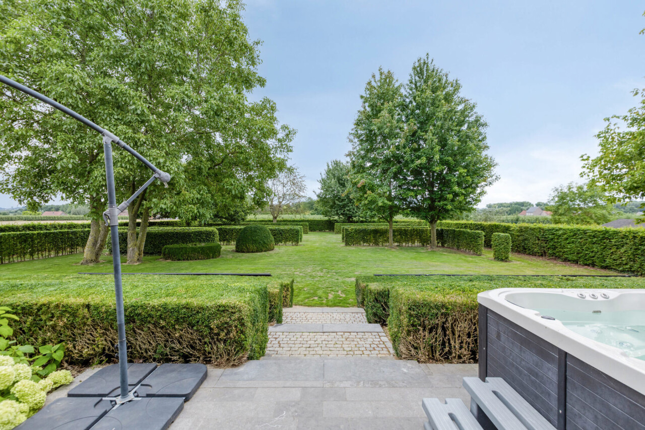 De fraai aangelegde tuin vormt een oase van rust, compleet met jacuzzi, en biedt een adembenemend uitzicht over de achterliggende natuur.