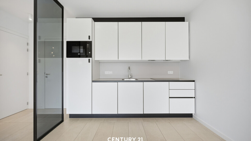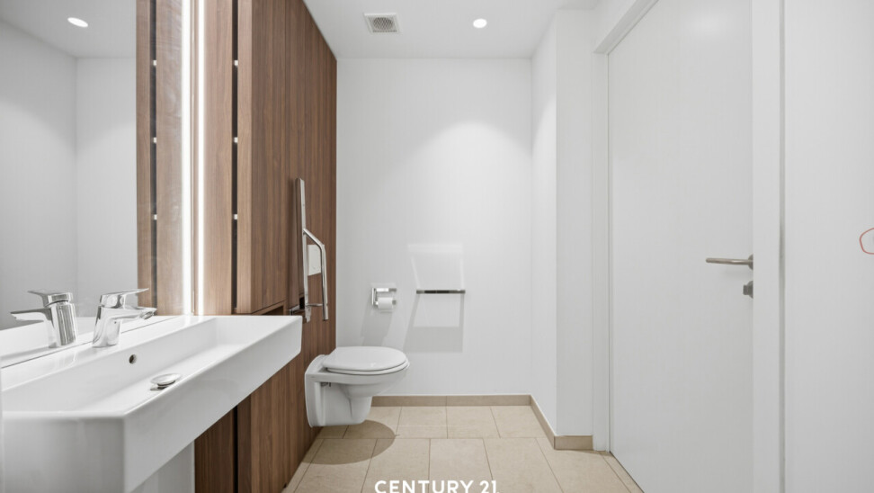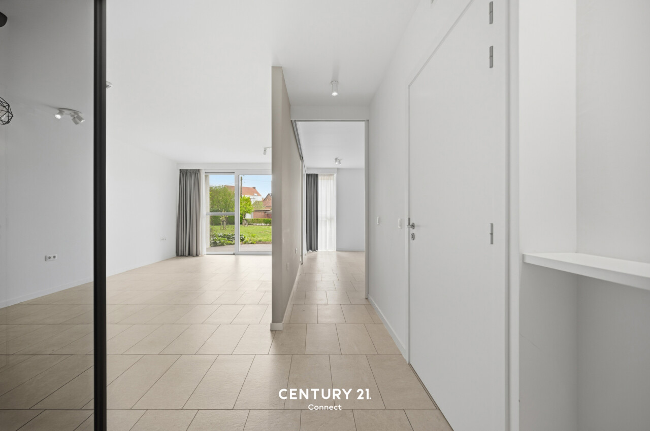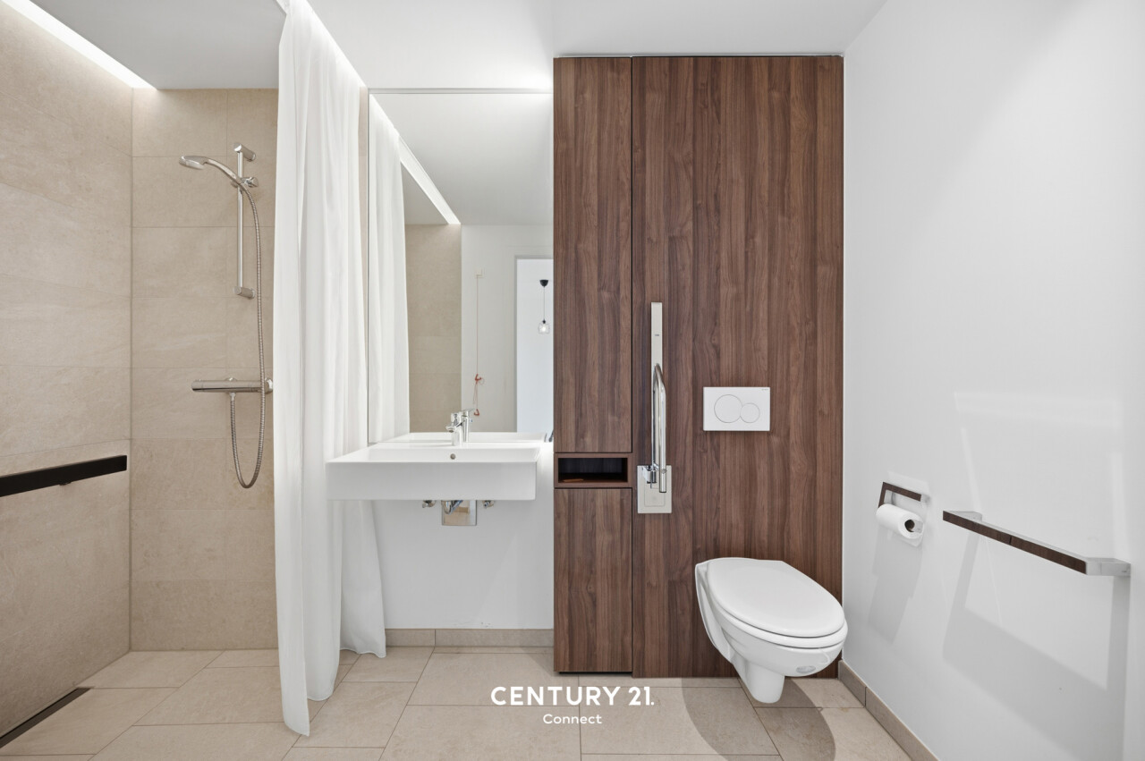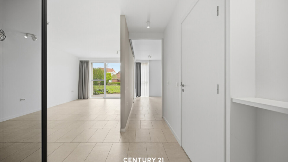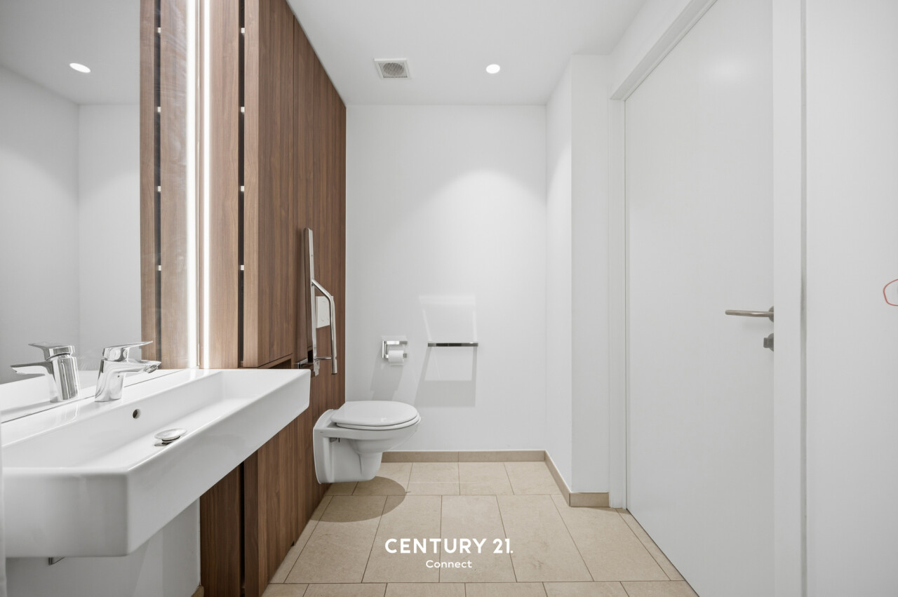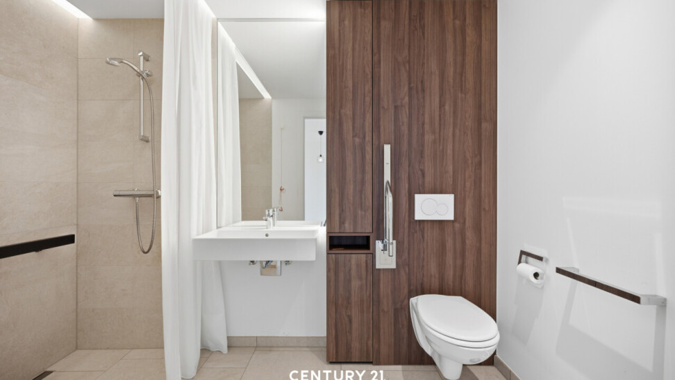 Bij het betreden van het appartement springt de praktische en doordachte indeling meteen in het oog. Dankzij de brede deuropeningen is elke ruimte vlot toegankelijk met een rolstoel. De leefruimte is ruim en geniet van veel natuurlijk licht door het grote schuifraam dat uitgeeft op het aangename terras. De keuken is volledig uitgerust met een inductiekookplaat, combi-microgolfoven, koelkast met vriesvak en een vaatwasser. Verder beschikt het appartement over een ruime slaapkamer en een aangepaste badkamer met een rolstoeltoegankelijke douche, toilet, lavabo en voldoende steun- en wandbeugels. Daarnaast is er ook een handige berging met aansluitingen voor een wasmachine en droogkast.