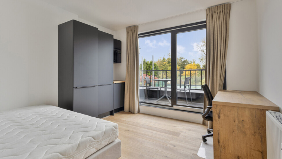 Deze residentie is gelegen aan de Leuvense stadsrand, namelijk op de Geldenaaksebaan! Deze locatie biedt zowel voor studerende jongeren in Leuven, Heverlee én Brussel een goede uitvalsbasis.