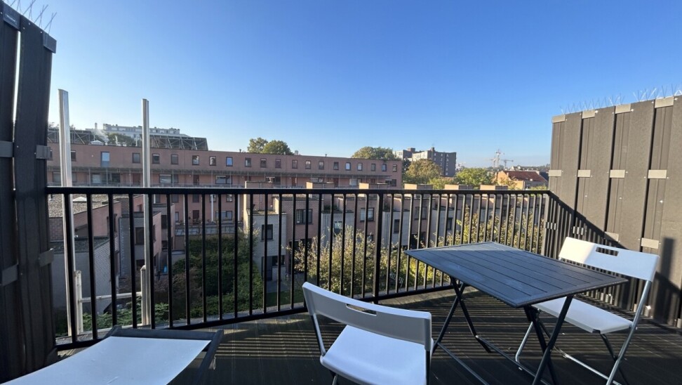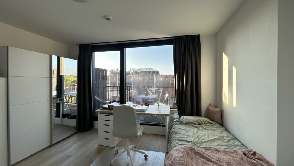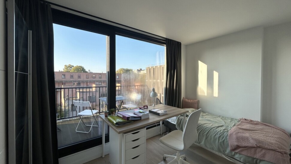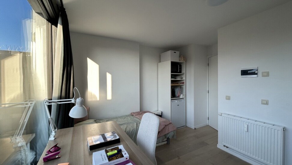 Kamer 02.02 bevindt zich op de tweede verdieping aan de achterzijde van het gebouw en beschikt over een gezellig privatief terras. Bijkomend heeft deze unit een eigen badkamer. De kamer is verhuurd academiejaar 2024-2025 aan een maandelijkse huurprijs van €570,- (excl. lasten).
