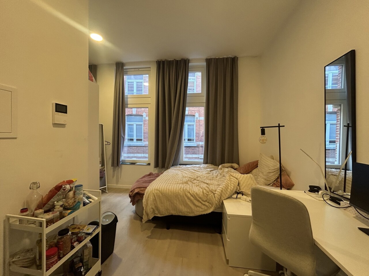 Niet op de Oude Markt maar in de Krakenstraat, nabij de Oude Markt kan u deze prachtige studentenkamer vinden. Deze locatie is de ideale uitvalsbasis voor uw student aangezien Campussen, faciliteiten, supermarkten, het nachtleven... allemaal op wandelafstand te vinden zijn. Ook het openbaar vervoer voorziet een makkelijke verbinding tot aan het Leuvense treinstation. De kamer privatief sanitair zelf is gelegen op de eerste verdieping van het gebouw en telt een bewoonbare oppervlakte van 20m². Deze kamer is uiterst ruim en zeer lichtrijk gezien de drie grote raampartijen.