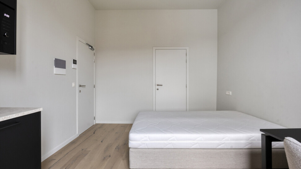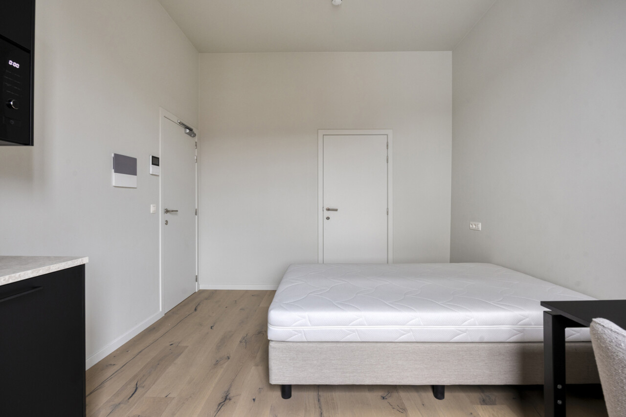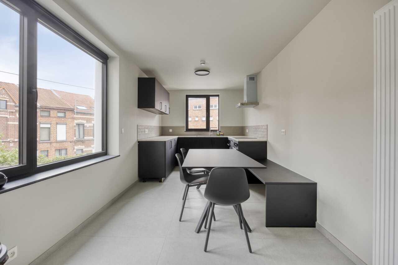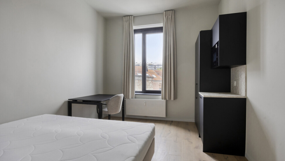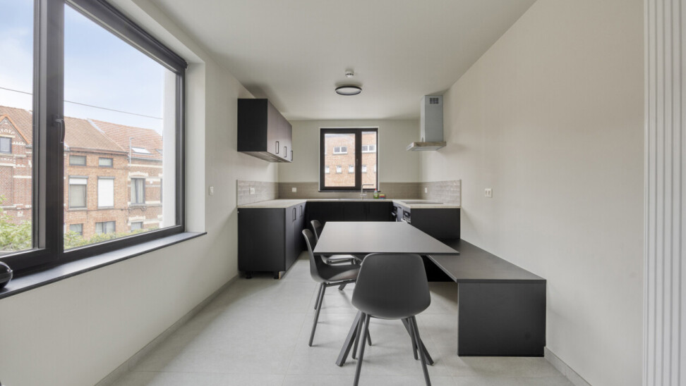 Deze residentie is een vernieuwbouwproject. De renovatie werd uitgevoerd met oog voor detail, kwaliteitsvolle materiaalkeuze en afwerking. Daarnaast voldoet het gebouw aan de strenge energiezuinigheidsnorm van 2025. Deze knusse residentie bestaat uit 5 kamers eigen sanitair en 1 studio met privé tuin. Bijkomend heeft dit pand een gemeenschappelijke keuken. Kortom, deze residentie heeft het allemaal.