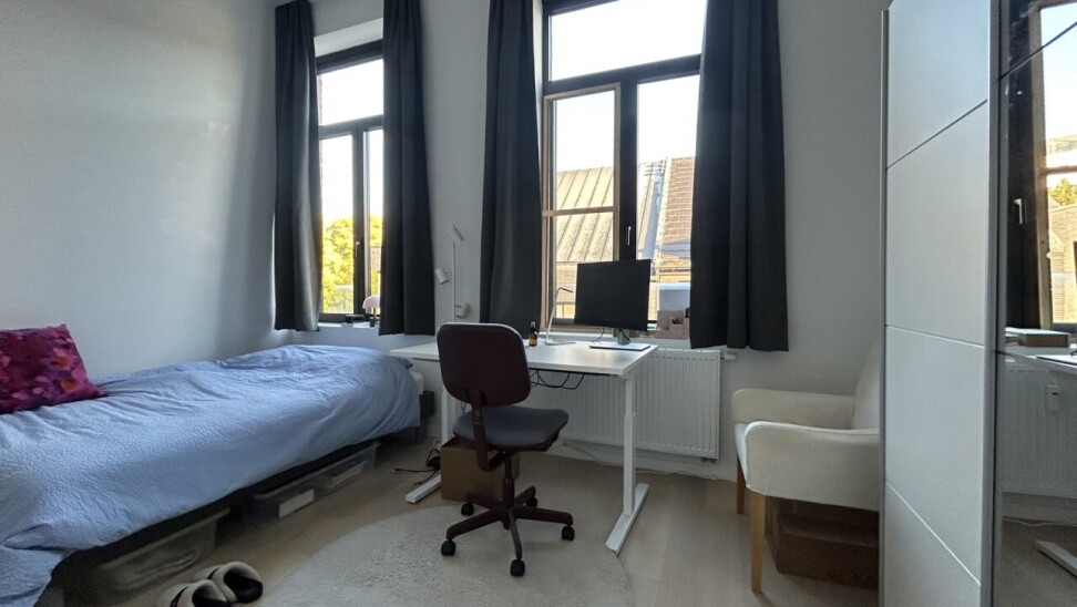 Kamer 01.01 bevindt zich op de eerste verdieping aan de voorzijde van het gebouw en beschikt over privatief sanitair. De kamer is verhuurd academiejaar 2024-2025 aan een maandelijkse huurprijs van €520,- (excl. lasten).