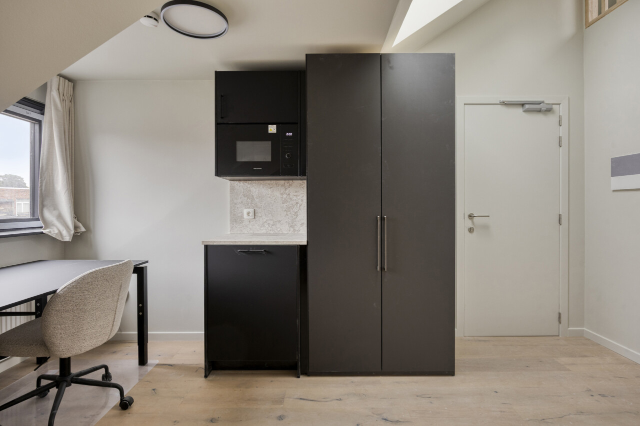 Deze residentie is een vernieuwbouwproject. De renovatie werd uitgevoerd met oog voor detail, kwaliteitsvolle materiaalkeuze en afwerking. Daarnaast voldoet het gebouw aan de strenge energiezuinigheidsnorm van 2025. Deze knusse residentie bestaat uit 5 kamers eigen sanitair en 1 studio met privé tuin. Bijkomend heeft dit pand een gemeenschappelijke keuken. Kortom, deze residentie heeft het allemaal.