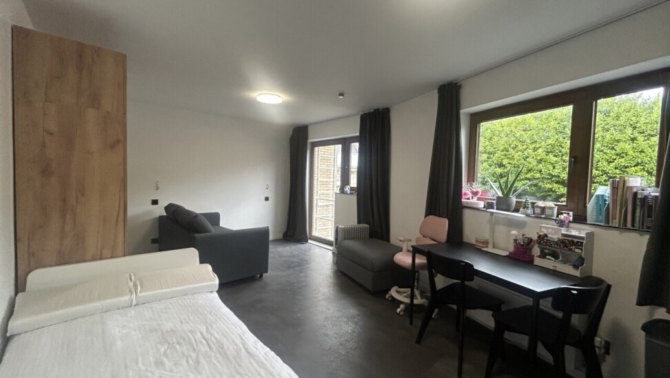 In dé Broekstraat te Heverlee, nabij Leuven Centrum, Abdij van Park, belangrijke verbindingswegen en het openbaar vervoer kan je deze uiterst rustig gelegen studio vinden. De unit zelf is in een zeer goede staat en werd steeds onderhouden met de grootste zorg. De meubels op de foto's zijn van de huidige huurders dus wij bieden een niet-bemeubelde studio aan. Aansluiting wasmachine is aanwezig en de unit zelf is voorzien van een warmptepomp wat zorgt voor een energiezuinig verbruik.