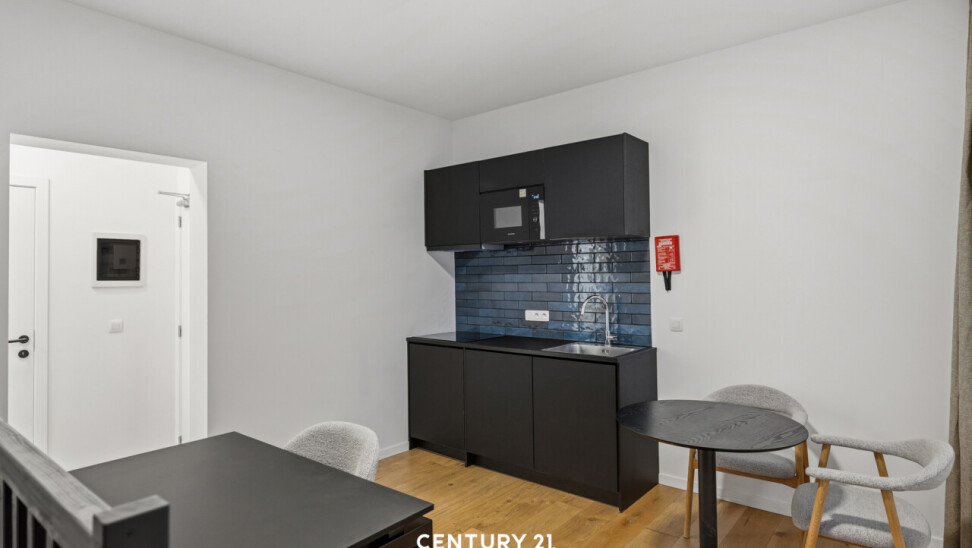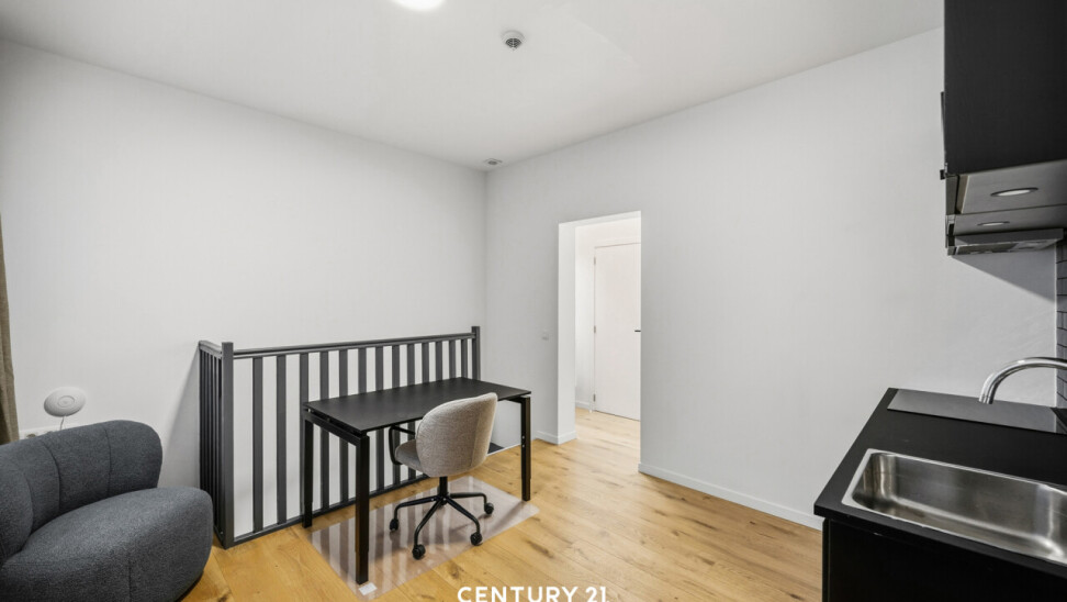De studio is volledig bemeubeld, heeft een volledig geïnstalleerde keuken, badkamer en een aparte slaapkamer. Ronduit, alles om te kunnen ontspannen na een lange dag vol lessen.