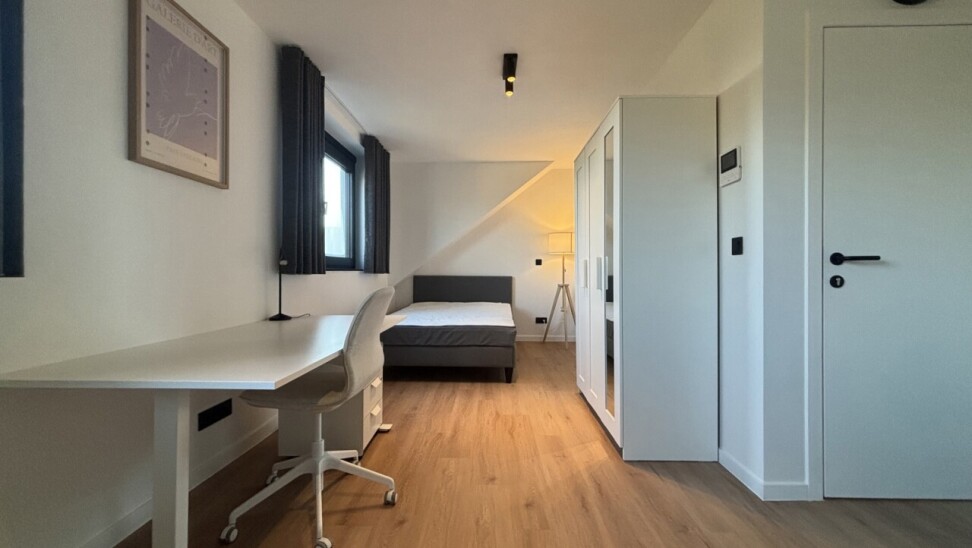 Deze ruime gerenoveerde studio is gelegen in Heverlee, aan de zuidkant van de bruisende studentenstad Leuven. De studio is de perfecte uitvalsbasis voor studenten verbonden aan de Arenbergcampus, de faculteiten van de wetenschappen, het interuniversitair onderzoekscentrum van IMEC en de UC Leuven-Limburg. Naast deze onderwijsvoorzieningen zijn tal van faciliteiten in de nabijheid te vinden: sportkot, supermarkten, openbaar vervoer (station Heverlee & Leuven), Leuven Centrum…