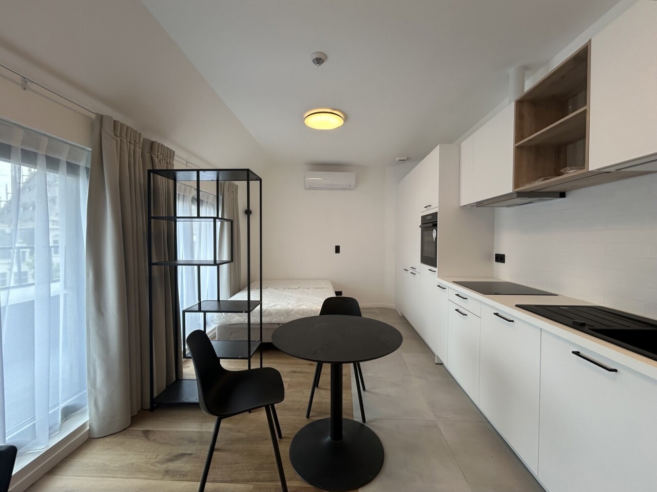 Residentie Het Foch is een absolute parel. De studio is gelegen op de vierde verdieping, aan de voorzijde van het gebouw en heeft een prachtig verzicht over de historische binnenstad. De entiteit beschikt over een privatieve keuken en badkamer, en bijkomend een privatief terras. Bovendien wordt de studio volledig bemeubeld verhuurd.