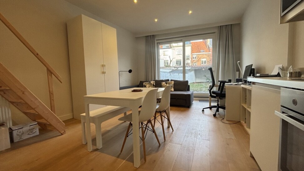 We bieden u met veel plezier deze lichtrijke bemeubelde studio aan gelegen in de Frederik Lintstraat, binnen de ring van Leuven. Het gebouw ligt op een ideale locatie, namelijk in de buurt van verschillende supermarkten, campussen, het bruisende centrum en nog zo veel meer. De studio zelf is gelegen op de gelijkvloerse verdieping aan de achterzijde van het gebouw, wat zorgt voor pure rust. Een absolute voltreffer is de prachtig aangelegde tuin met terras.